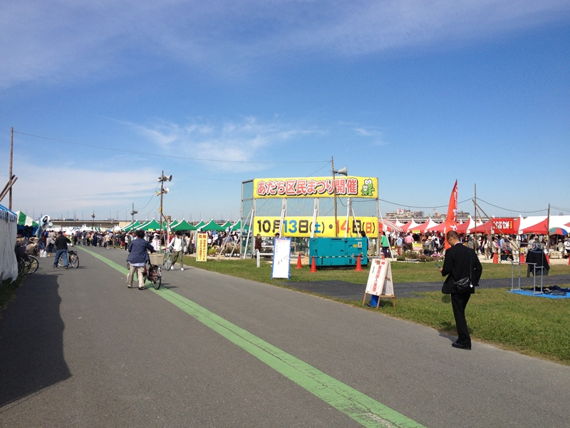 ところが千住新橋付近で"あだち区民まつり"が開催されていて、自転車は押していかなければなりません。