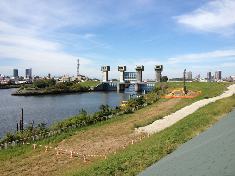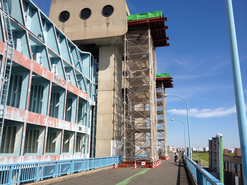水門は工事中のため、通れる幅が4m弱となっていました。