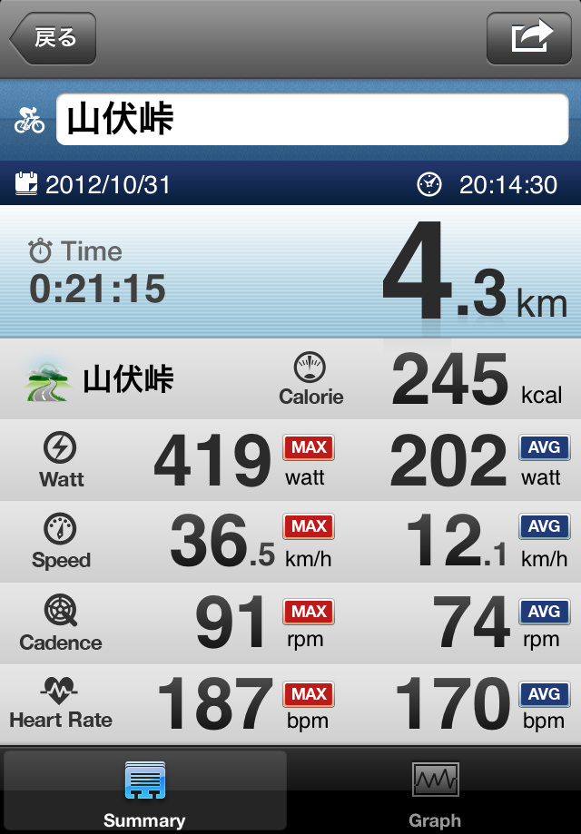 山伏峠をセットして、実際にLiveTrainingを開始してみました。