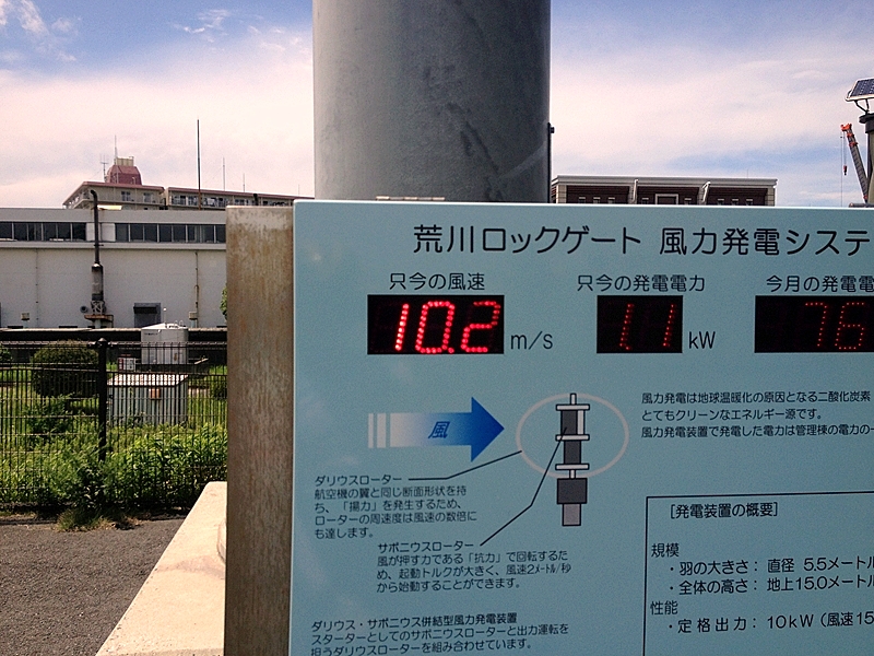 荒川ロックゲートの風力計は、10.2m/sとなっていました。