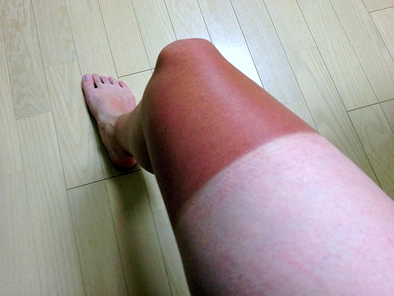 帰宅してシャワー後の太腿を見ると、日焼け痕がクッキリ!