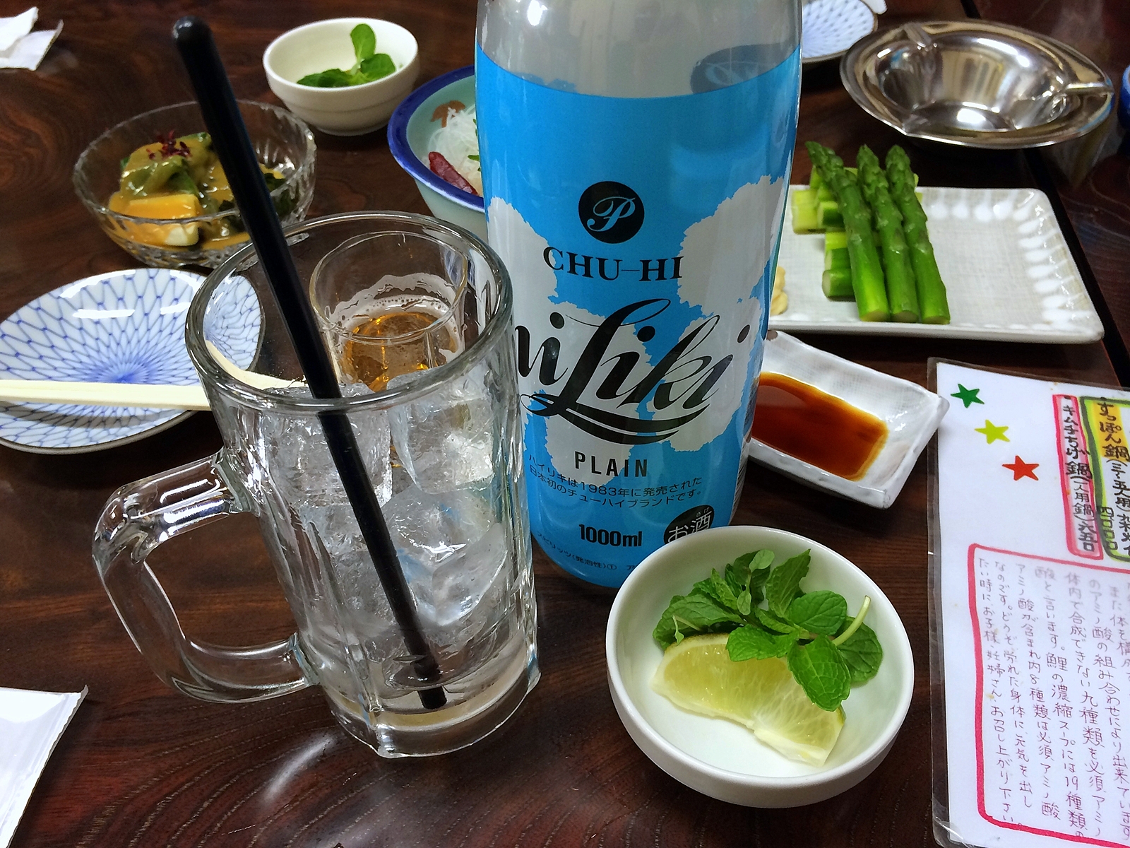 飲み物はジャン酎とミントを頼み、モヒートを作ります。