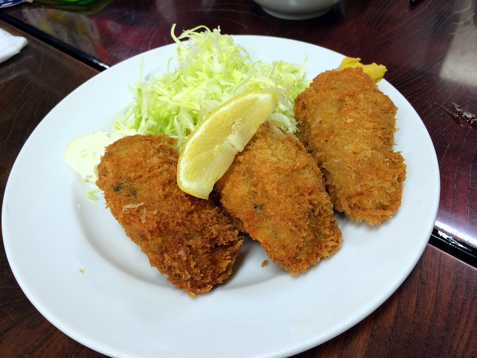 カキフライと新たまねぎフライ。